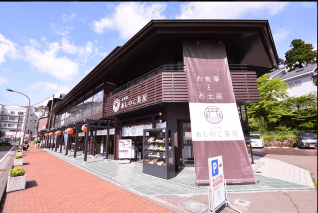 小田原駅や箱根湯本駅から箱根登山バスに乗り箱根海賊船『元箱根港』で降りて徒歩1分の距離にお店を構えています。